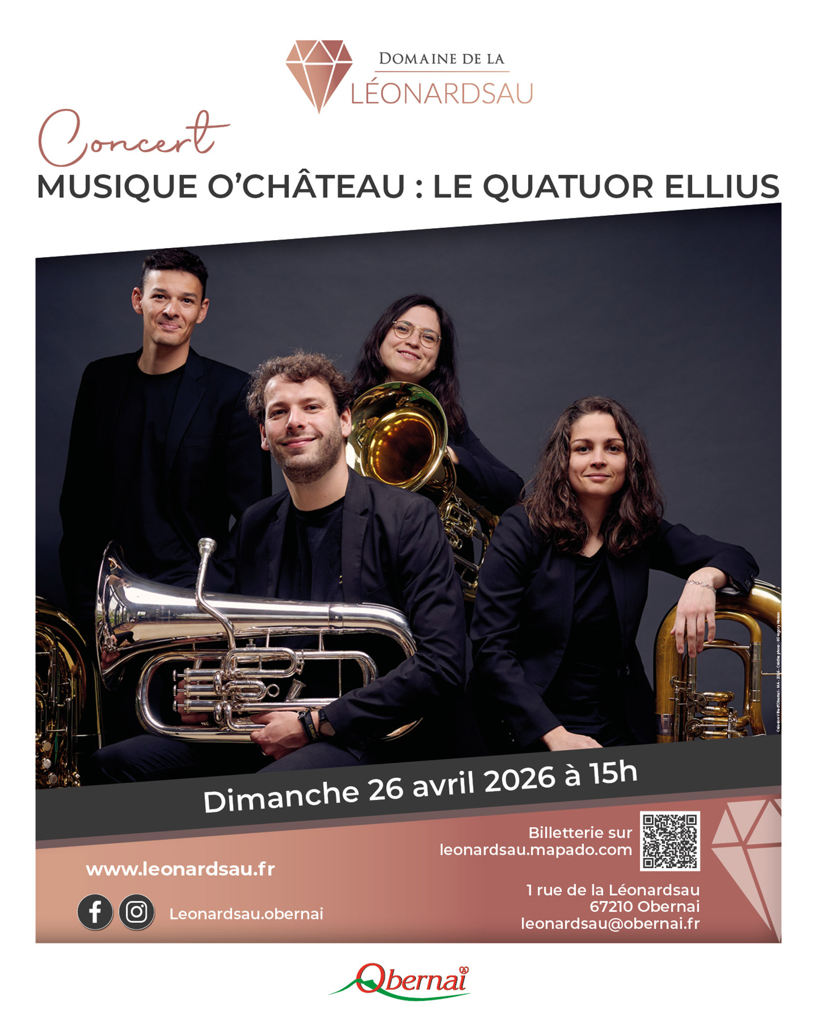 Pour ouvrir la saison 2026 de « Musique O' Château » au Domaine de la Léonardsau, place à l’audace de la jeunesse avec le Quatuor Ellius, un ensemble singulier réunissant deux euphoniums et deux tubas.